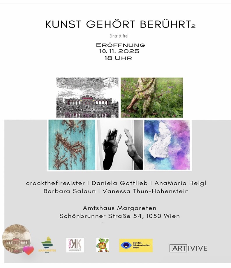 16.11. - 30.11.2023: 18.00, Präsentation Kunstkatalog und Vernissage, Thema: Höhen und Tiefen - ups and downs. Amtshaus Margareten, Schönbrunnerstraße 54, 1050 Wien.