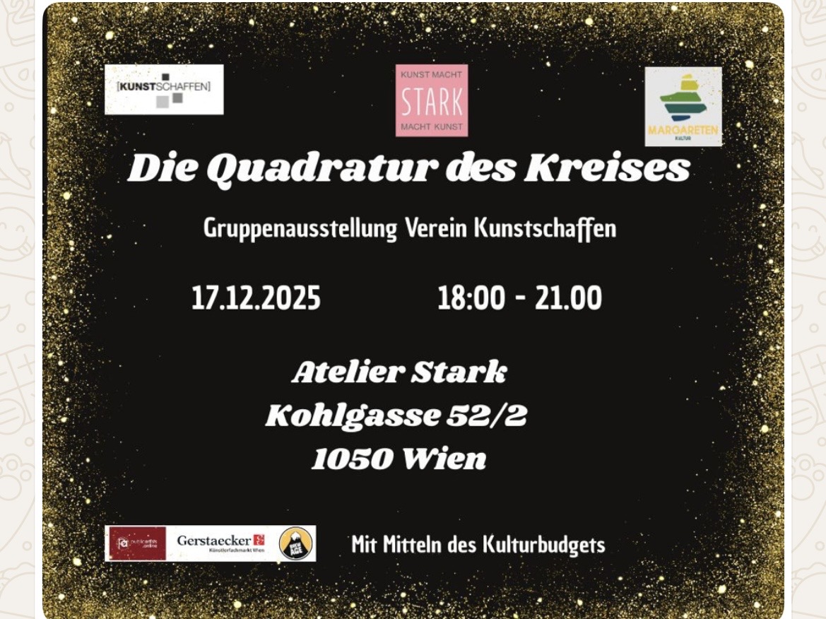 Einzelausstellung: 11. Bezirk, im April. genaueres und Einladung sobald die Daten bekannt sind, .Inclusive Galerierundgang Meidling am 24&25.04.2026